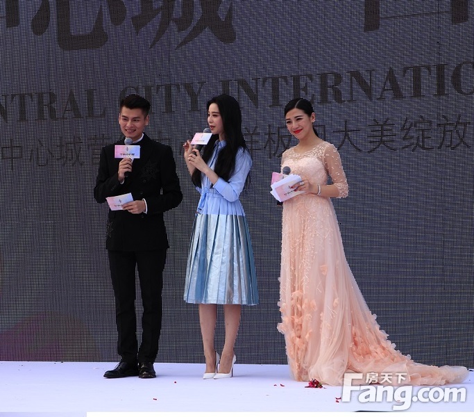 譚震:是的,就像我們說的,我們購買一處房子,首先要考慮的是為我們打造這樣一個項目的開發商是不是具有非常雄厚的實力,正如華策集團一樣,一直都致力于為“城市運營商”,開發濱水高尚社區,非常擅長處理水、建筑、自然與人的關系,這樣的雄厚實力當然在今天也為大家請出了巨星來到現場與我們分享,冰冰身著一襲藍色衣裙來到現場,仿佛水中仙子一般,讓我們掌聲歡迎國際巨星冰冰小姐,我們也要歡迎冰冰的好朋友時尚教父Tony先生。