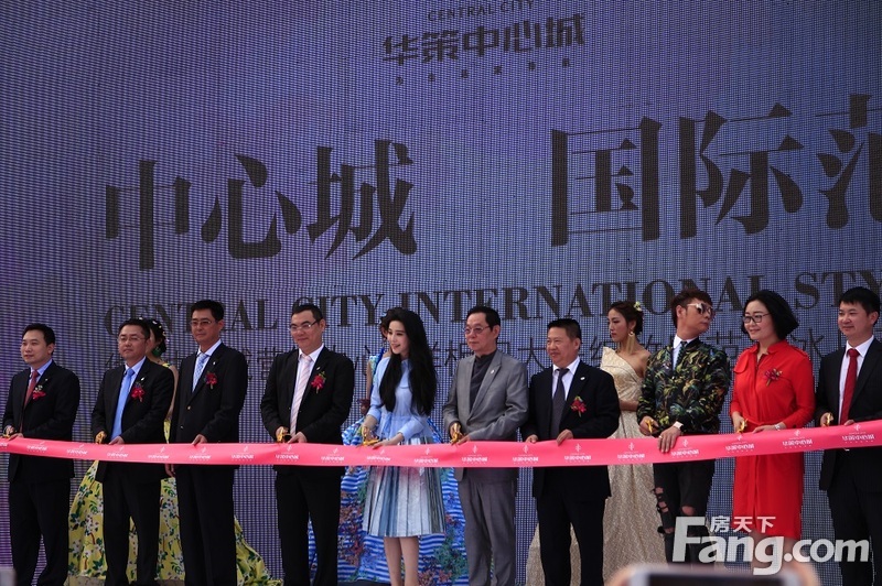 譚震:接下來邀請冰冰和各位尊貴的領導和嘉賓進行非常隆重的儀式,就是為華策中心城進行剪彩。