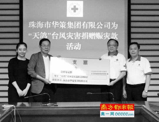 昨日下午,珠海市華策集團有限公司(下稱“華策集團”)向珠海市紅十字會為“天鴿”強臺風災害捐款1000萬元。市政府副市長、市紅十字會長閻武代表市紅十字會接受了捐贈。據介紹,此次捐款是珠海目前行動最快、金額最大的捐贈。