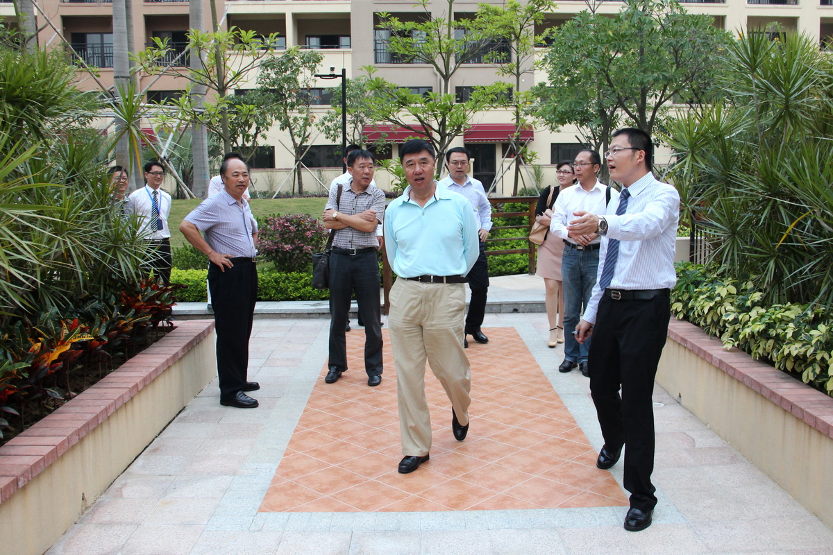 長春國家高新區(qū)考察團(tuán)在嶺南國際花園參觀考察。右二為國家半導(dǎo)體照明工程研發(fā)及產(chǎn)業(yè)聯(lián)盟副秘書長付強(qiáng)、右三為高新區(qū)黨工委書記楊俊良、右一為高新區(qū)副區(qū)長劉成福、左一為華策集團(tuán)西海房地產(chǎn)投資有限公司董事長王華。